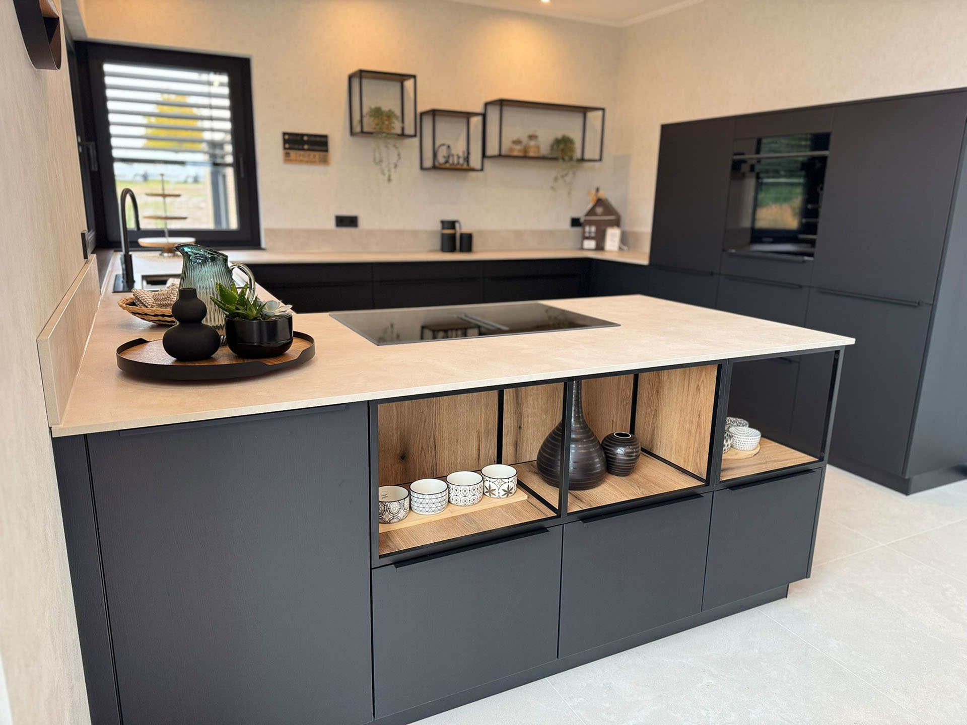 Die Küche – das Herzstück des Hauses – verbindet Funktionalität mit ästhetischem Design. Hochwertige Materialien und clevere Stauraumlösungen schaffen nicht nur einen praktischen, sondern auch einen optisch ansprechenden Raum.