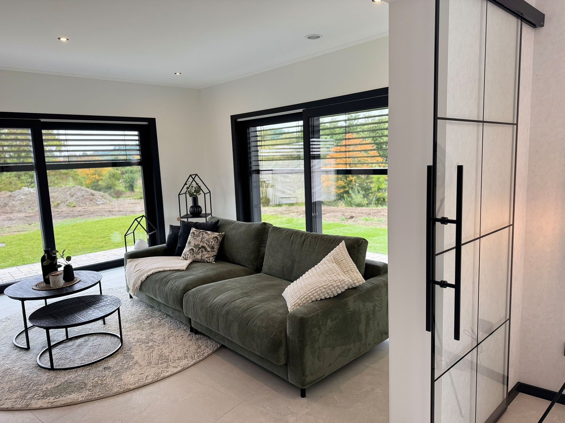 Unser Musterhaus steht für modernes Wohnen mit Wohlfühlfaktor. Große Fensterfronten bringen Licht in jeden Raum, während hochwertige Materialien und eine nachhaltige Bauweise für ein angenehmes Wohnklima sorgen – heute und in Zukunft.