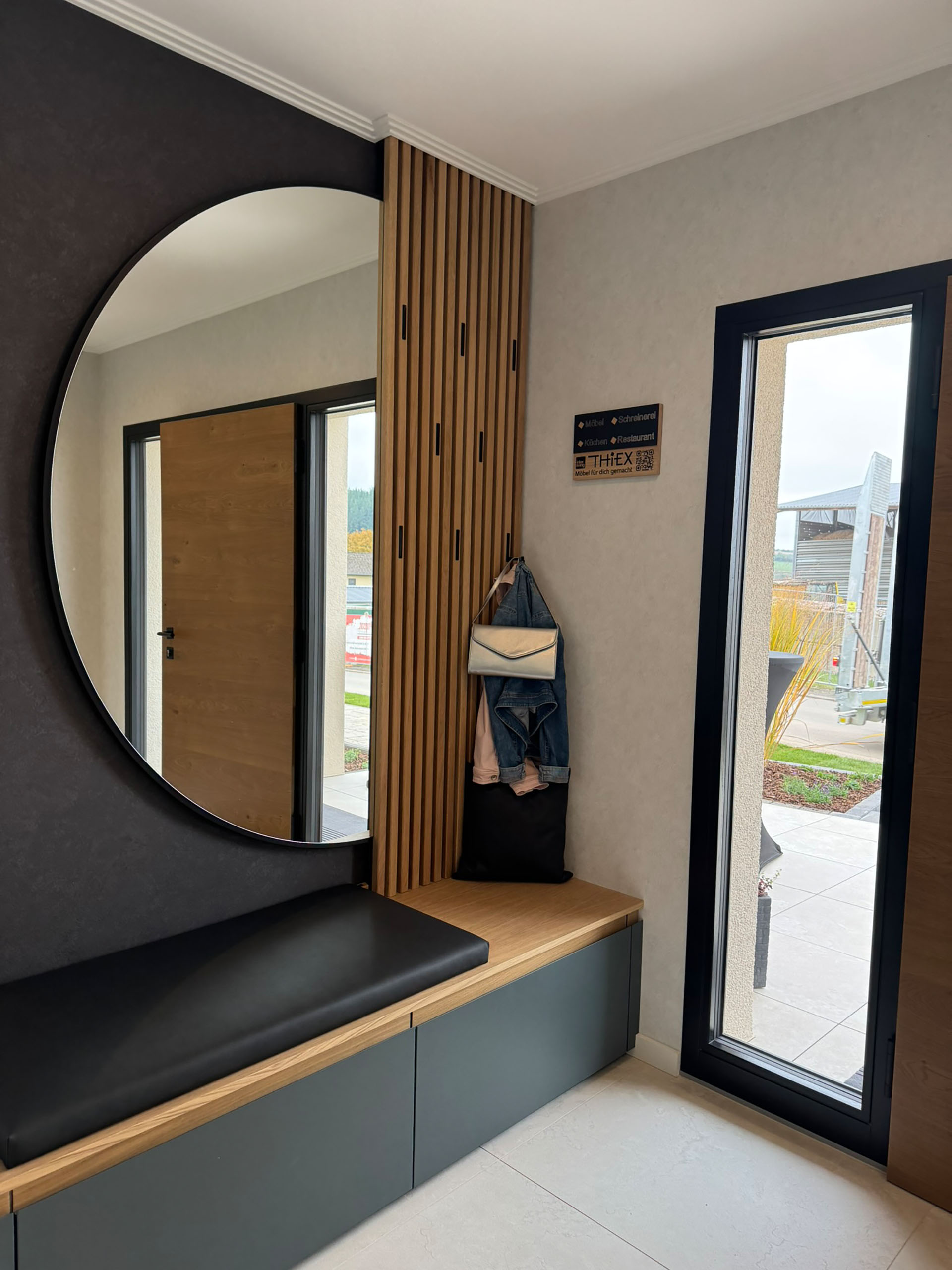 Jeder Raum in unserem Musterhaus erzählt seine eigene Geschichte – und lädt dazu ein, das Wohnen neu zu denken. Die offene Raumgestaltung sorgt für Großzügigkeit und schafft ein Gefühl von Freiheit. Vom gemütlichen Wohnbereich über die moderne Küche bis hin zum luxuriösen Bad wird deutlich, wie Wohnkomfort und Stil Hand in Hand gehen.